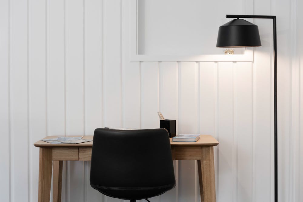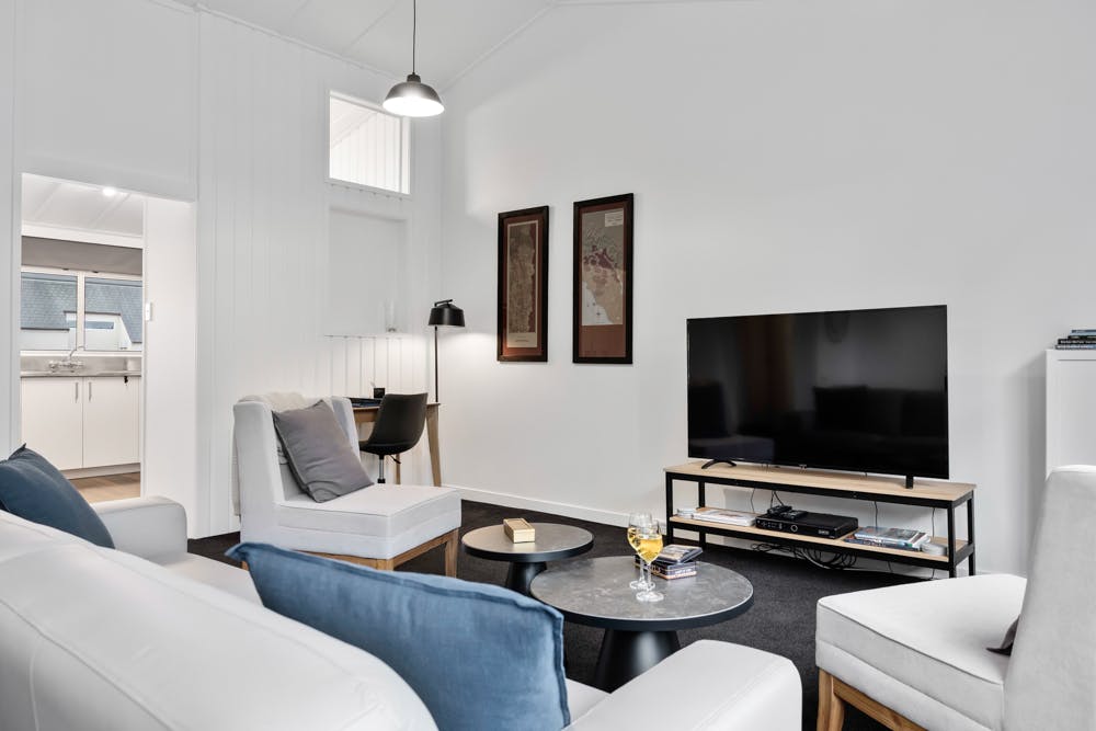 If you’re in town for business, our workstation features an oak writing table with an adjustable swivel chair. There’s a floor lamp and an executive notepad if you need to burn the midnight oil.